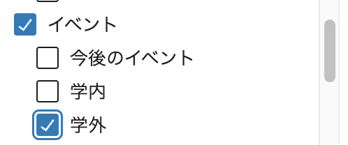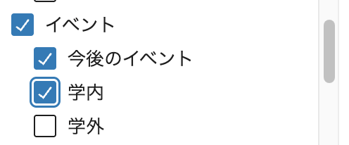 • 1ヶ月以内に開催されるイベントは、「今後のイベント」にチェックをいれてください。