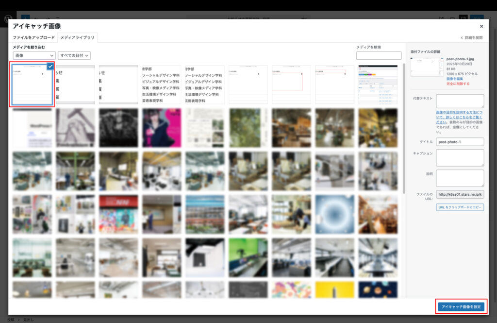 • アイキャッチ画像を設定を選択してください。