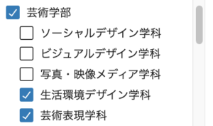 • 全ての学科に関係がある場合は、個別で全ての学科にチェックを入れてください。