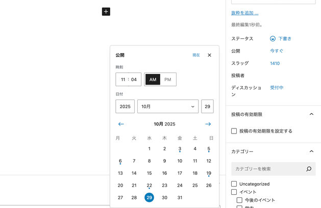 1. 投稿日時を変更する場合